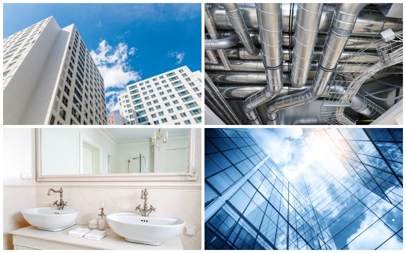 - Para muros cortina, fachadas y sistemas de ventanas y puertas